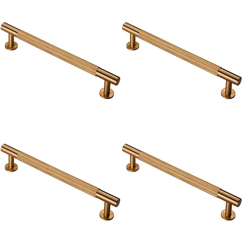 4 Pack | Knurled Bar Door Pull Handle - 190 x 13mm - 160mm Fixing Centres - Satin Brass | Designer Cabinet Pull Handle - Wardrobe Cupboard Door Handle - Suitable for Lightweight Internal Doors