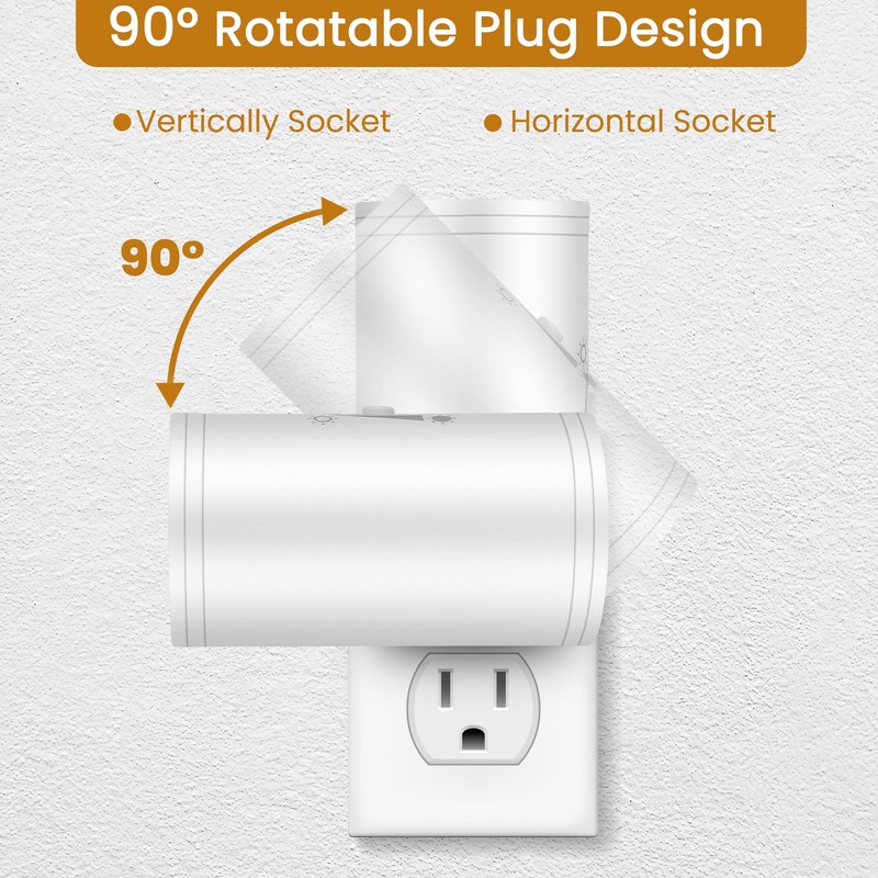 • Plug in Night Light for Any Room, Anytime-- Installs instantly into any wall outlet without tools. Use in bedrooms, bathrooms, hallways, kitchens, or staircases. Compact design ensures it never blocks adjacent outlets, making it a versatile solution for homes with kids or aging family members.