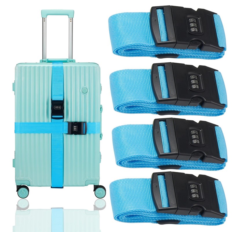 4-Pack Luggage Straps with Combination Lock | 79" Adjustable Suitcase Bands for Travel | Heavy-Duty Quick-Release Buckle | Bright Color Identification (Blue)