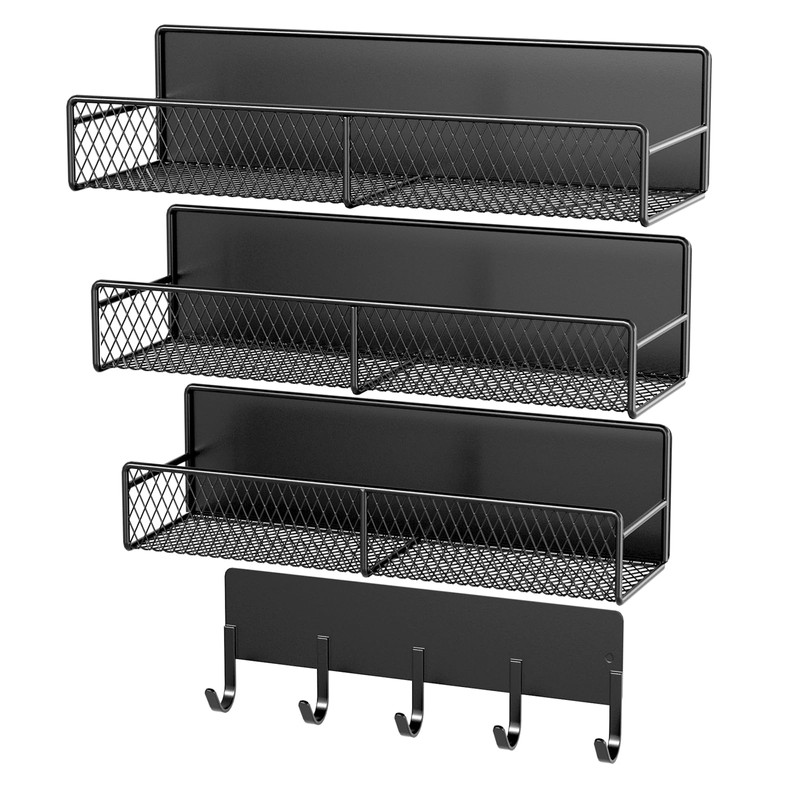 4 Pack Magnetic Shelves for Washing Machine, Heavy-Duty Magnetic Laundry Organizer with Hooks, Washing Machine Shelf for Refrigerator, Metal Storage Baskets, Closet & Laundry Room Organization(Black)