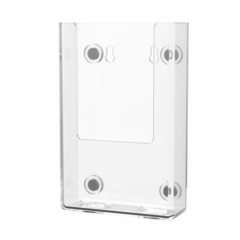 - Made of durable clear plastic such as acrylic, plexiglass, lucite and PETG polycarbonate materials. The brochure holder features a clear see-through pocket that offers a full view of your printed advertisements or media. It also allows easy access for pamphlet removal and comes with strong magnets for simple installation on smooth, metal surfaces. This holder is a great addition in high-traffic areas where you want to display and provide your promotional literature for the taking.