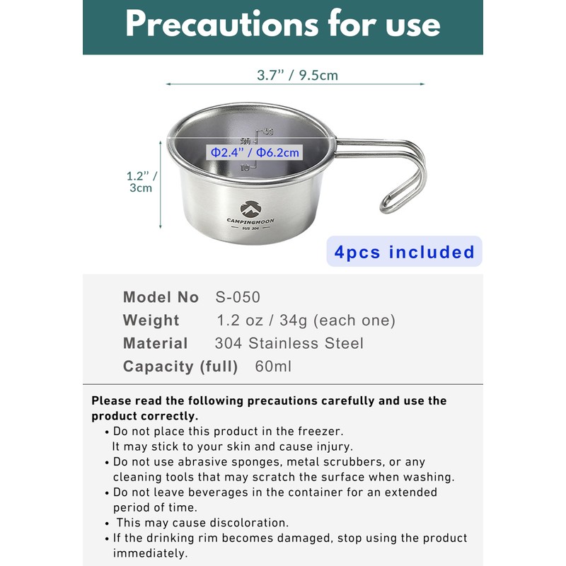 - 【Multi-Purpose Use】With a full capacity of approximately 60ml, it's great for dipping sauces, espresso, tastings, measuring, or even enjoying a small drink around the campfire.