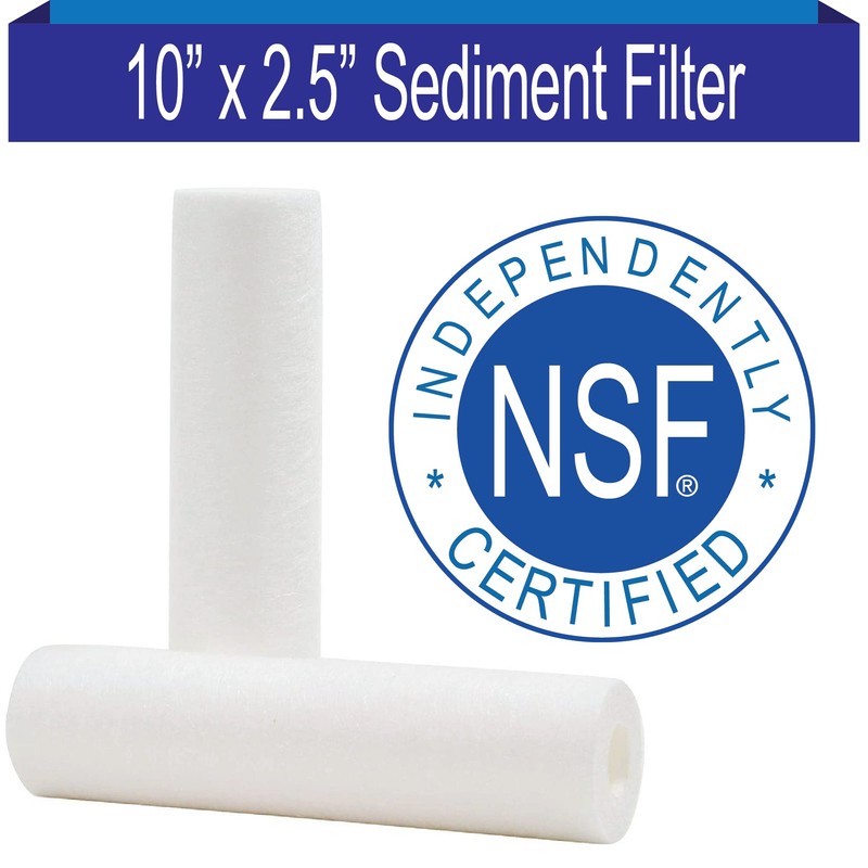 These sediment filters are made of fine melted polypropylene that has been spun to form a cylinder-like form. A sediment filters main function is to remove large and fine particles such as sand, dirt, silt, and rust particles from drinking water. Each cartridge is individually shrink-wrapped. Universal Industry Standard size of 10” by 2.5” and is also compatible with most standard RO Filter units.