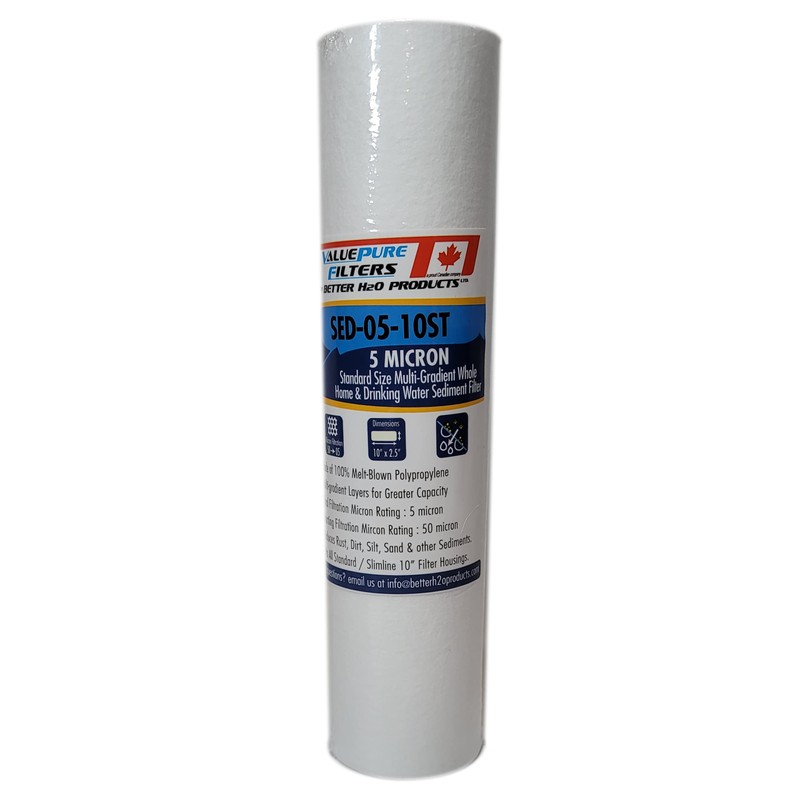 4 Pack of 5 Micron Standard Size (10"" by 2.5"") Sediment Filters by Better H2O Products Inc.