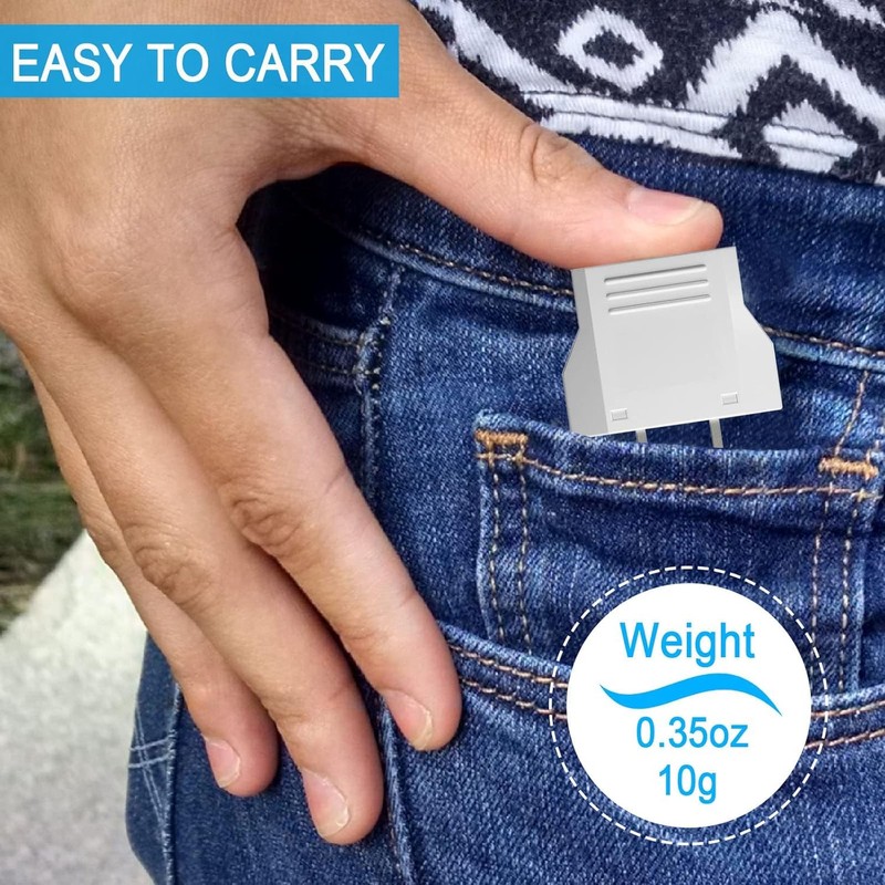 - [ULTRA LIGHT and COMPACT DESIGN]: European to US plug adapter is mini size: 1.8*1.5*0.5in, Weighs only 0.35oz, portable size allows these us plug adapter easily put in your pocket, perfect for travel and home use.