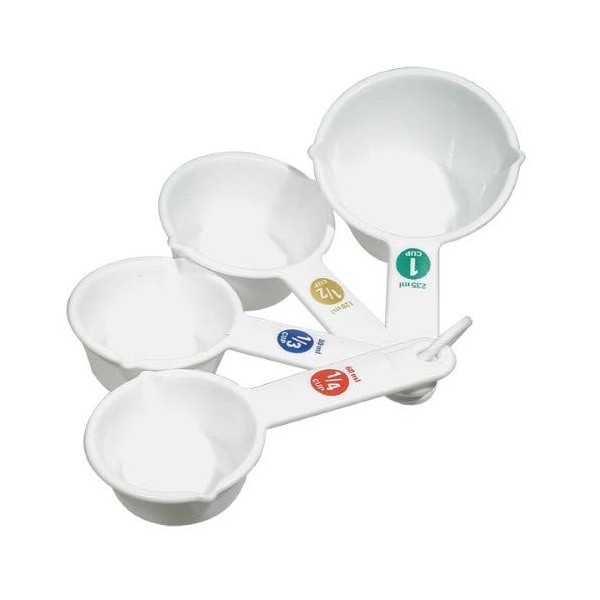 - 4-piece measuring cup set includes 1/4, 1/3, 1/2 & 1 cup sizes