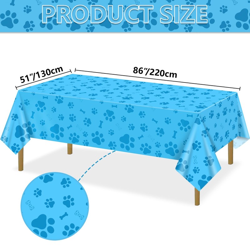 - Size and Quantity: This package contains 4 pieces of paw print tablecloths, each with a size of 51x86 inches (130x220cm). Each tablecloth fits most table sizes and is easy to meet your needs for a dog birthday party and for replacement