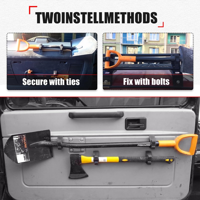 4 Pack Quick Release Rubber Clamp Mount Kit 1-1/5" to 1-1/2" Fist Mount Clamps Mounting Kit Diameter Tool Handles for Trucks UTV ATV Offroad 4X4 Parts Roof Rack Shovel Mounting Kit(4 Pack)