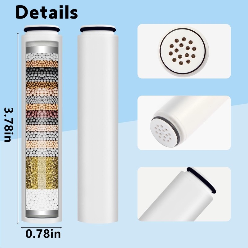 - ✅ Filtration system: composed of 50% KDF-55 material and 50% calcium sulfite balls efficiently removes residual chlorine, heavy metals, limescale and impurities, reduces dry and itchy skin, and protects healthy bathing.