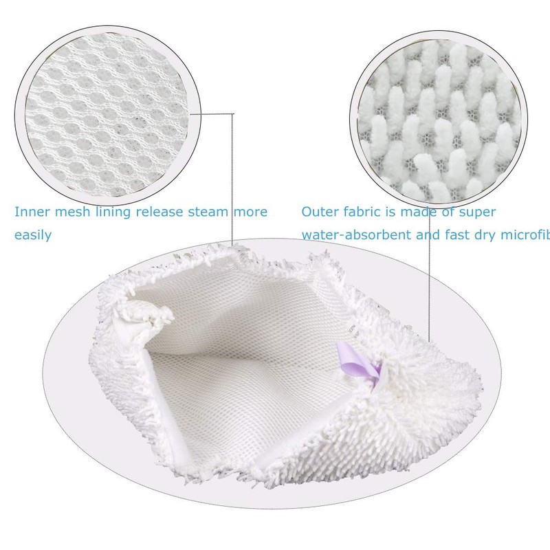 - Advantage : mop pads are provided with strong water absorption, Easy to attach, long-lasting, dry fast, germ-proof, reusable for without fading in high temperatures, many times without shedding, change, wash, tumble or line dry.