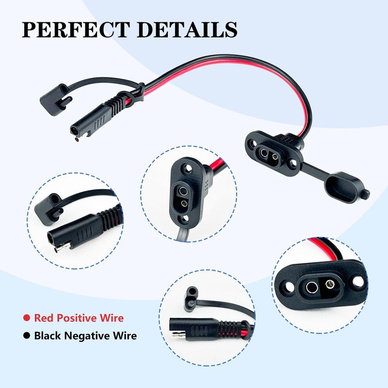 - Weather-Resistant & Durable Construction: Built to withstand harsh conditions, these connectors feature a UV-resistant PVC jacket and sealed design to resist moisture, dust, and extreme temperatures (-40°F to 185°F). The sturdy metal contacts provide long-term durability, making them ideal for outdoor, automotive, motorcycle battery charging, cars, lawn motors, tractor battery, boat, tractors, RVs, and other devices with SAE ports