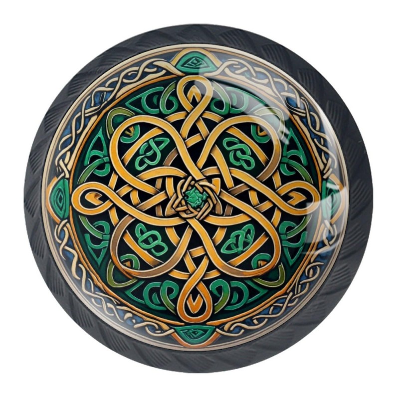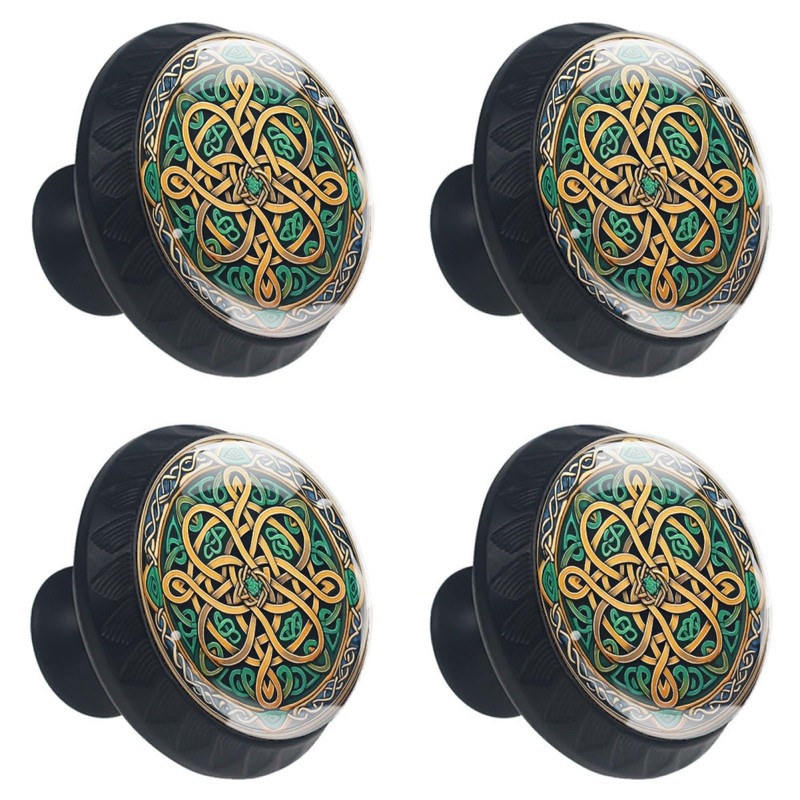 4 Pack Set Cabinets Hardware Round Furniture Knobs Celtic National Art Ornament, Drawer Dresser Cupboard Wardrobe Pulls Handles for Home Kitchen