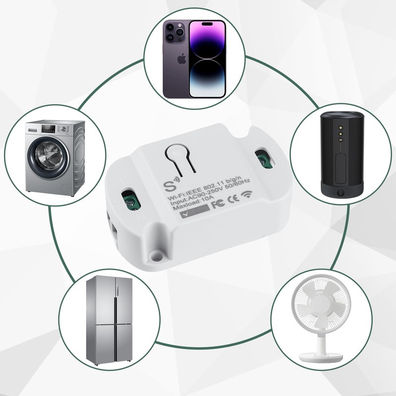 • Smart Switch: Ein Mini Smart Lichtschalter Modul 1 Weg, das hinter einem vorhandenen Schalter installiert werden kann, um einen vorhandenen herkömmlichen Schalter in einen Smart Switch umzuwandeln. Neutralleiter erforderlich, Wechselstrom 100–240 V, max. 16 Ampere