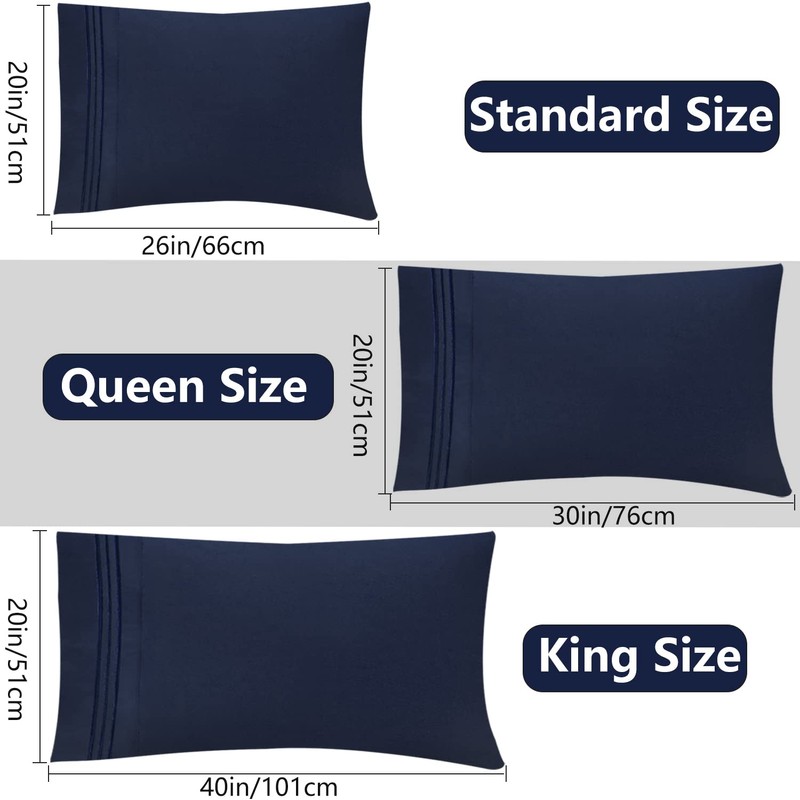 4 Pack Soft Microfiber Pillowcases with Embroidery - Envelope Closure, Breathable, Wrinkle, Shrinkage and Fade Resistant Pillow Cases, Easy Care and Wash (Navy Blue, Standard (20" x 26"))