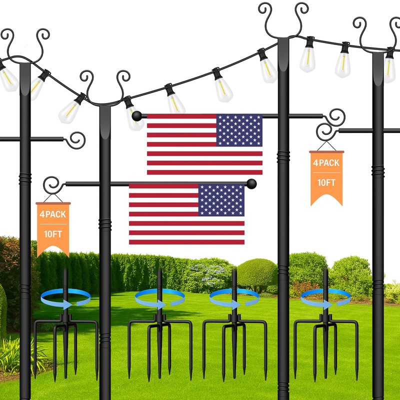 - 4 Pack String light poles: Includes 4 poles + mounting accessories, no extra purchases .Metal light polesompatible with most string lights