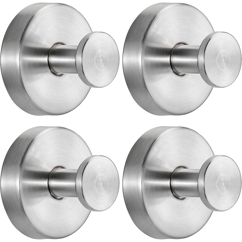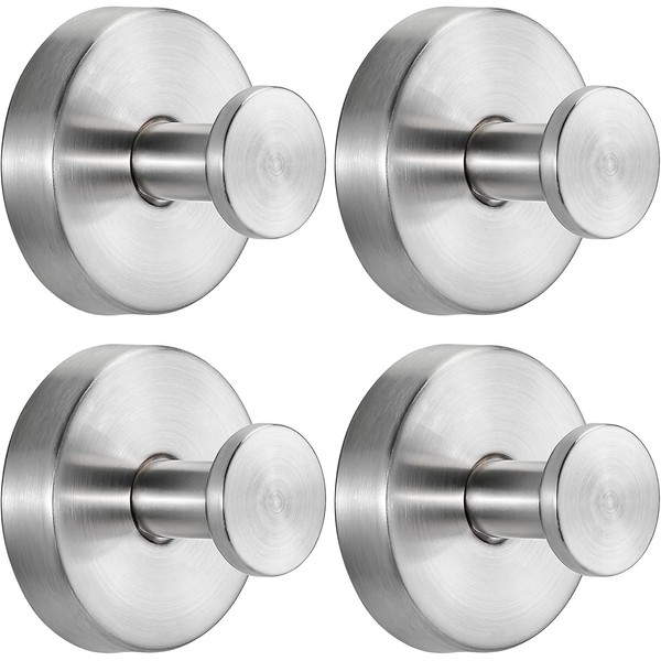 4 Pack Suction Cup Hooks Reusable No Drill Stainless Steel Shower Hooks Towel Hook Robe Hook Heavy Duty on Smooth and Non-Porous Surfaces in Bathrooms Kitchen Bedroom (Silvery*4)