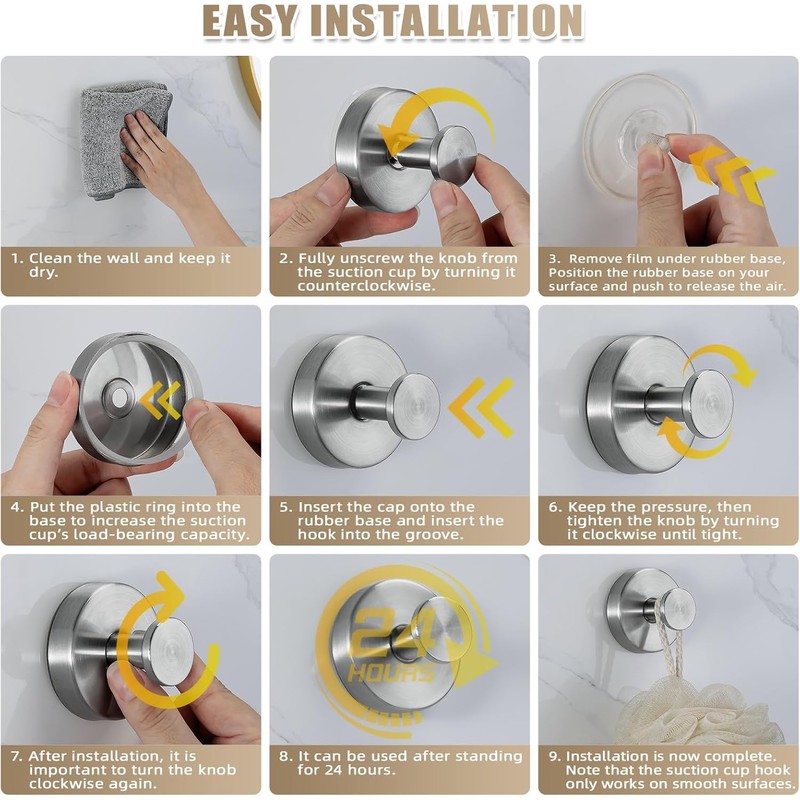 - 【High quality material】The towel hooks are made of high quality stainless steel, while the suction cup is made of TPU. They are rust-resistant, waterproof and easy to clean with a damp cloth.