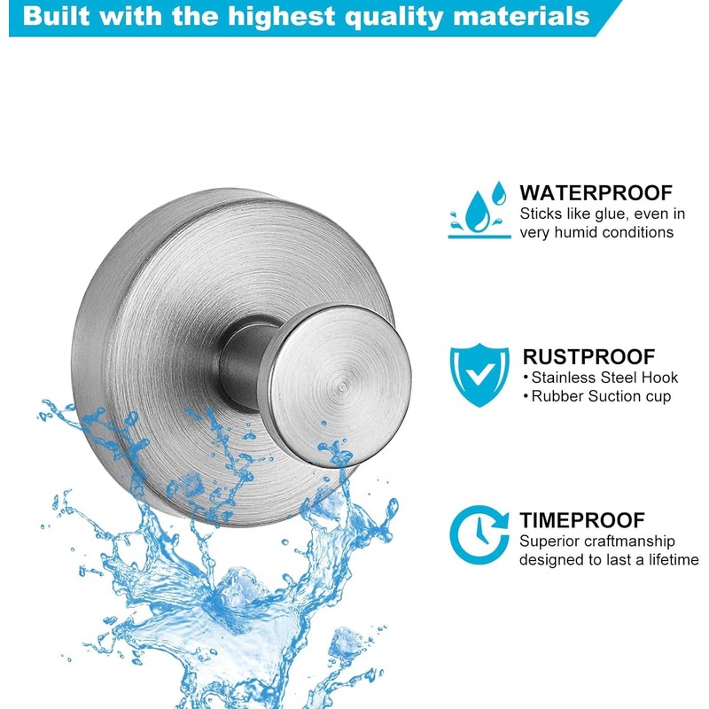 - 【Functionality meets style】 Superior vacuum suction technology allows for effortless installation and adds a touch of elegance to your bathroom. Super strong glue on suction cup. Each hook can hold up to 15-kg, making it ideal for towels, bathrobes and other bathroom essentials.