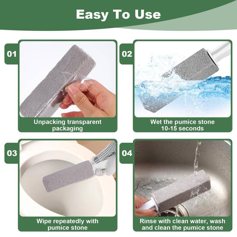 - 【Versatile】The Pumice Stone Toilet Bowl Cleaner is a versatile tool for scrubbing, scraping, and cleaning.pumice stone for cleaning it is also great for removing rust and grease from grills and ovens, as well as cleaning swimming pools. With the Pumice Stone with handle, stubborn stains in the kitchen, bathroom, and swimming pool can be easily eliminated.