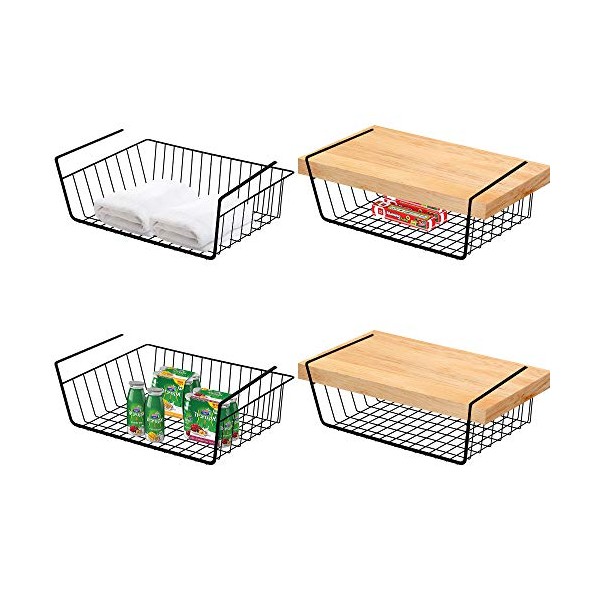 4 Pack Under Cabinet Organizer Shelf, Dveda Durable Metal Wire Rack Hanging Basket Storage Rack, Under Shelf Basket Shelf Organizing for Kitchen/Pantry/Bathroom/Desk - Slide Arms Height:1.45in(Black)