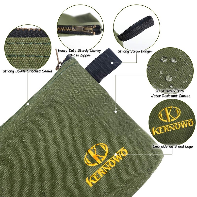 4 Pack Upgrade Zipper Canvas Tool Pouch, 20 oz Heavy Duty Tool Bag, Water Resistant Utility tools Organizer, 12.75 X 8 X 2.25 inch Spacious Storage Pouches with Dependable Brass Zippers by KERNOWO
