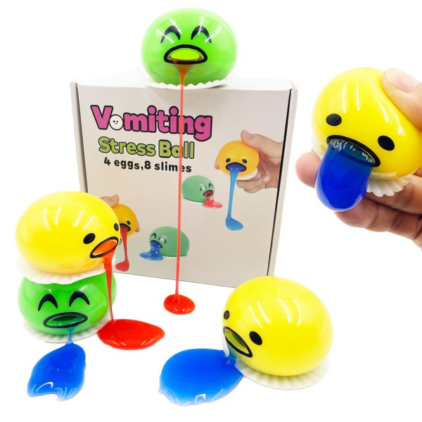 4-Pack Vomiting Stress Balls with Lazy Egg Yolk Design | 8-Pack Slime Squeeze to Release Messy Prank Sensory Toy for Teens, Adults & Kids | Family Novelty