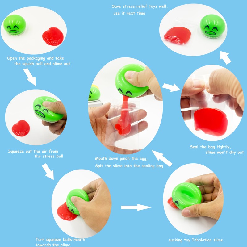 - 【Dual-Purpose Stress Relief & Prank Toy】 Double as stress relief toys for adults and funny prank gifts! The squishy texture and "Vomiting" slime effect help relax both body and mind, while the gag design entertains friends at parties. Search terms: Vomiting ball toy, funny stress balls, sensory fidget toys.