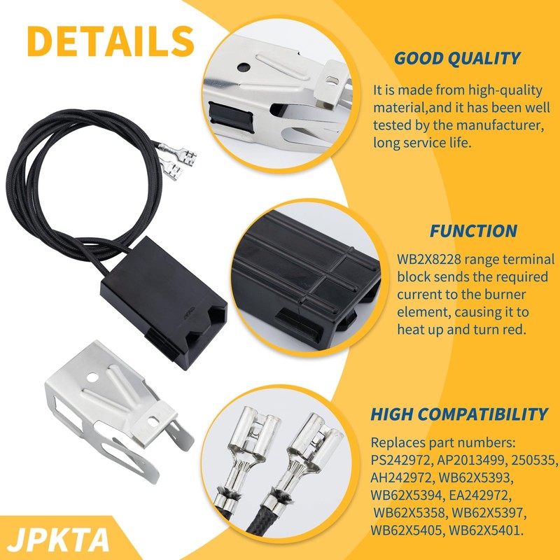 - GOOD QUALITY: WB2X8228 Element receptacle and wire kit is also known as terminal block kit,made from good material,and it has been well tested by the manufacturer,long service life, can save you time and money