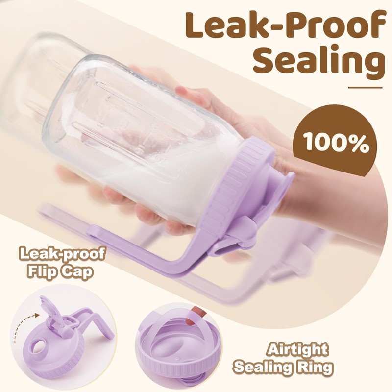 - Ergonomic Non-slip Handle: Mason jar with handle designed for easy handling, comfortable grip, non-slip, suitable for home kitchen, picnic and outdoor use. Wide mouth mason jar drinking lids allow single-handed use 64 oz/ 32 oz or any size Wide-mouth mason jars