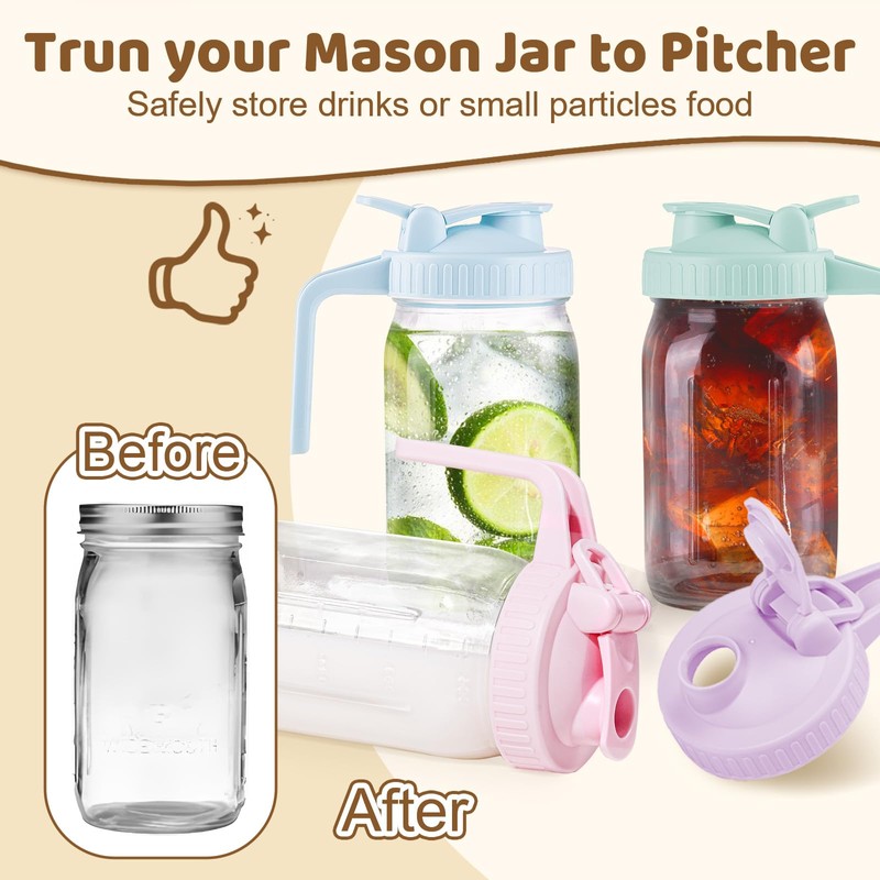 - Lifetime Quality Assurance: AoeJarry assures lifelong post-purchase service if mason jar pour lids are any quality concerns during usage, no matter how long you've been using it