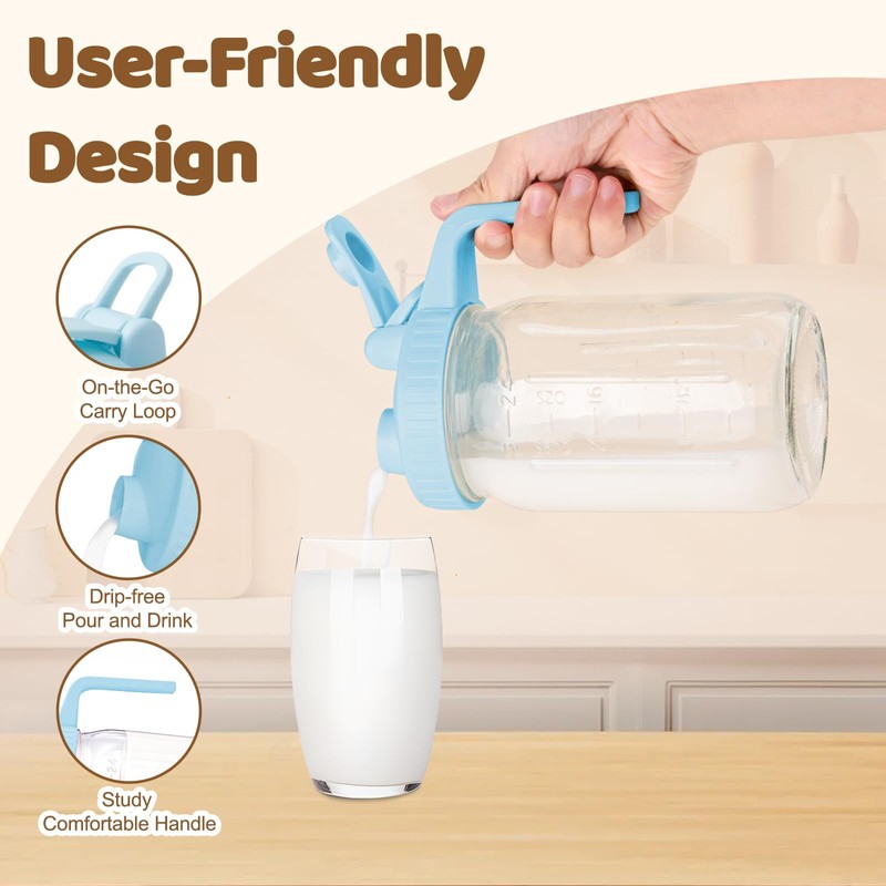 - Safe and Durable Material: Mason jar pitcher lid are made of food-grade material, BPA-free, durable. Mason jar pitcher with lid and spout are easy to hand wash, dishwasher safe, refrigerator safe or room temperature storage