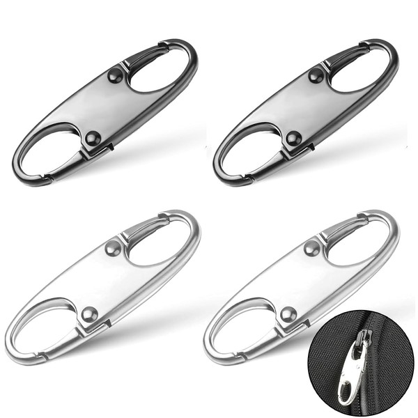 4 Pack Zipper Clips Theft Deterrent Zippers Pull Replacement, Backpack Luggage Case Zipper Locks (Black and Silver)