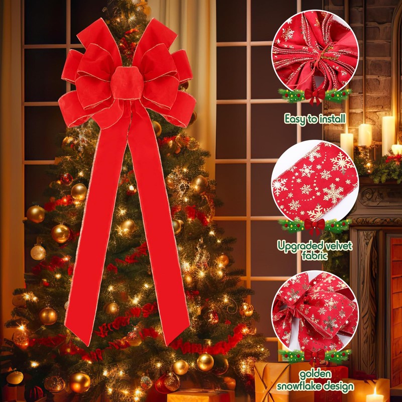 - Easy Knotting and Untying: with their practical red string at the back, these red bow tree toppers are not only easy to attach, but also effortless to remove when needed; You can quickly and conveniently tie and untie these bows, saving you time and hassle during the busy holiday season