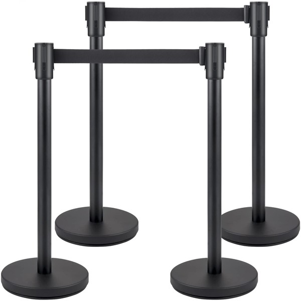 4 Packs Crowd Control Stanchion Set,Crowd Control Barriers,Black Stanchions with Retractable Belts 6.5Ft,with Easy Assembly,Height 36 inches, for Store Queues, Airport Lines, Event Entries