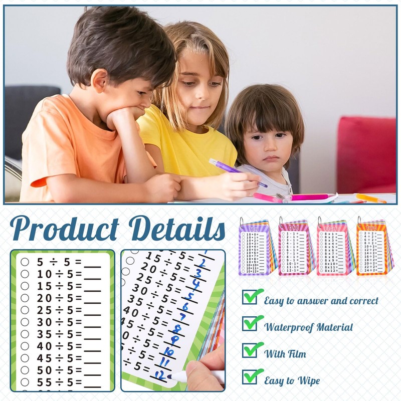 • Durable Material: Our math flash cards are made of thickened cardboard, with a laminated design that is waterproof and won't fade, and comes with metal binder ring that can be removed and used repeatedly.