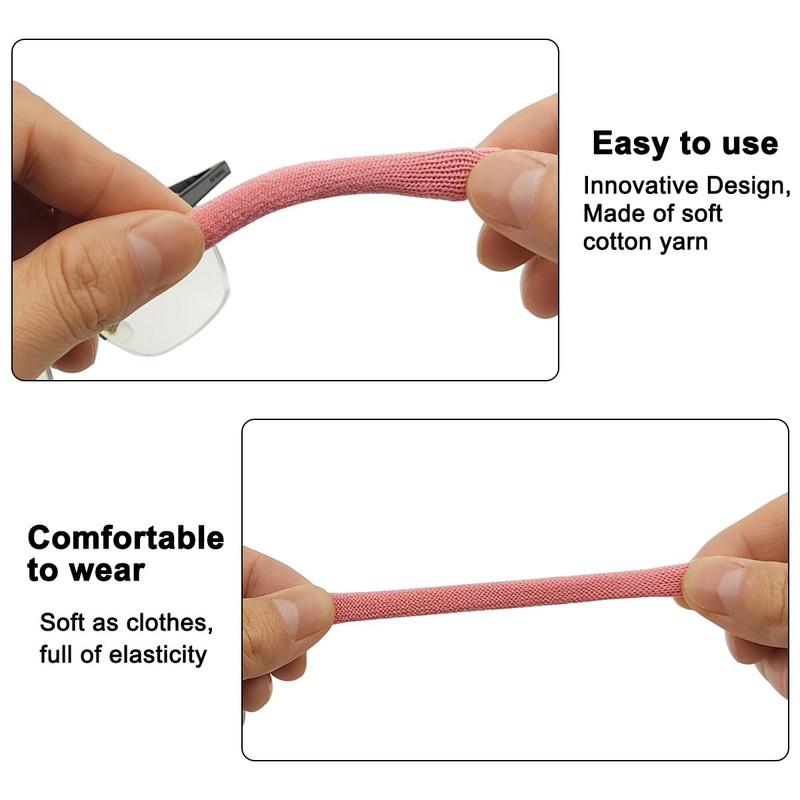 - Soft Material: The glasses ear cushion are made of cotton material, soft, portable comfortable, easy to wear, and fits better to your ears. The eyewear retainer will not hurt your ears and will not feel uncomfortable.The non-slip elastic comfortable glasses slip preventer is more suitable for people who wear glasses for a long time.