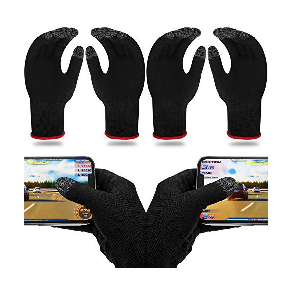 • Comfort material: the gloves are made of spandex, finger of silver fiber is as light as nothing when worn on the hand, the thin and light material provides nice breathability and resists sultry heat; They can isolate hand sweat and screen contact, non-slip, anti-drop, oil-proof, anti-fingerprint, helping you improve the game experience, and get an impressive and smooth game experience