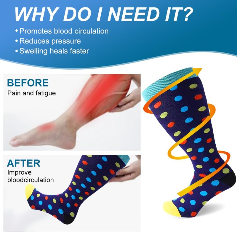 - Spacious and Comfortable Design - Our extra-wide calf compression socks are specially tailored for both men and women who wear extra-large or plus sizes, offering exceptional leg support and enduring comfort. Unlike standard-sized compression socks, these larger calf compression socks provide an even more comfortable experience, thanks to their lightweight and breathable material.