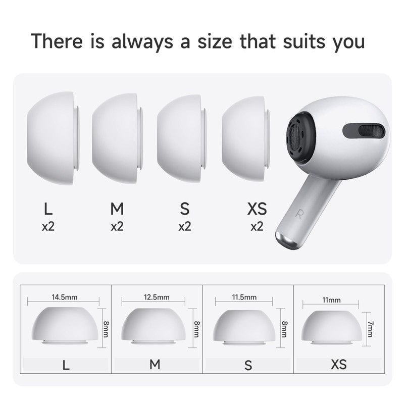 - Package contents: 1 pair of large, 1 pair of medium, 1 pair of small, 1 pair of extra small Airpods Pro/Airpods Pro 2 silicone eartips. Quipped with a storage box for storing earplugs.