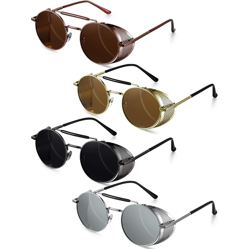 - Multi colors: you will receive 4 pairs retro round steampunk sunglasses in 4 different colors including black frame grey lens, gold frame brown lens, brown frame brown lens and silver frame silver mirror lens; 4 Colors design helps you to match your outfit easily and create different styles