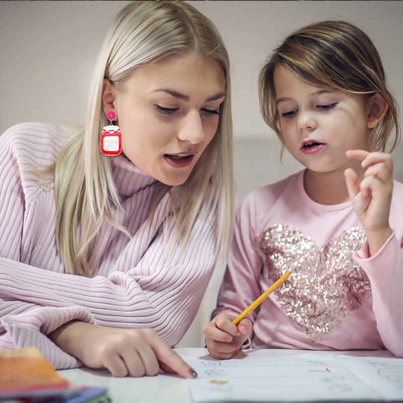 - Nice Jewelry Set: we offer you 4 pairs of funny cute earrings, cute and beautiful, sick of wearing boring earrings to school? It is time to let your bright and fun personality shine at school with our handmade 'Back To School' acrylic and alloy teacher earring,it will make a fun addition to any outfit