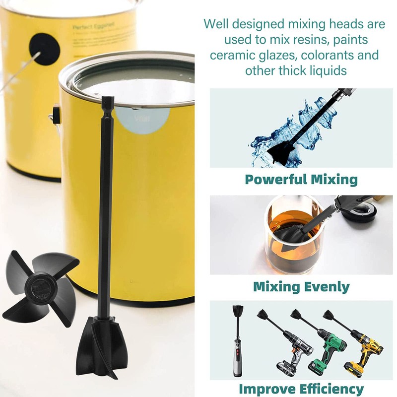 4 Paletas Mezcladoras de Resina, Mezcla Uniforme Fuerte, 5 Cuchillas, Mezclador de Pintura Reutilizable, Accesorio de Taladro para Mezclar Resinas (Negro)
