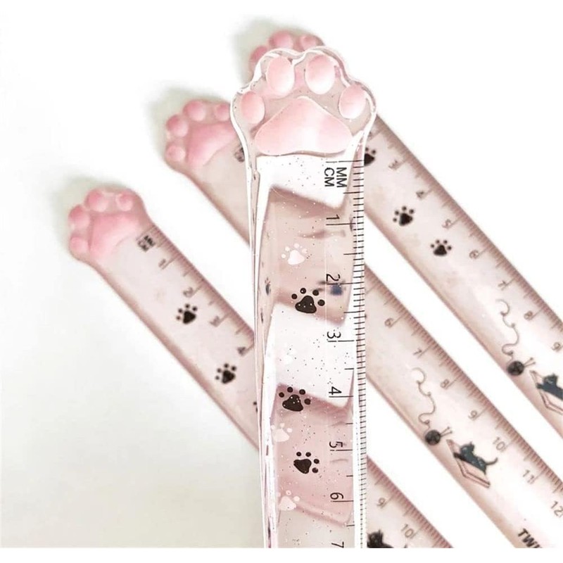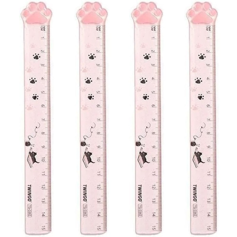 4 Pcs 15CM Pink Cats Claw Straight Rulers, Plastic Measuring Tool Kawaii Meas...