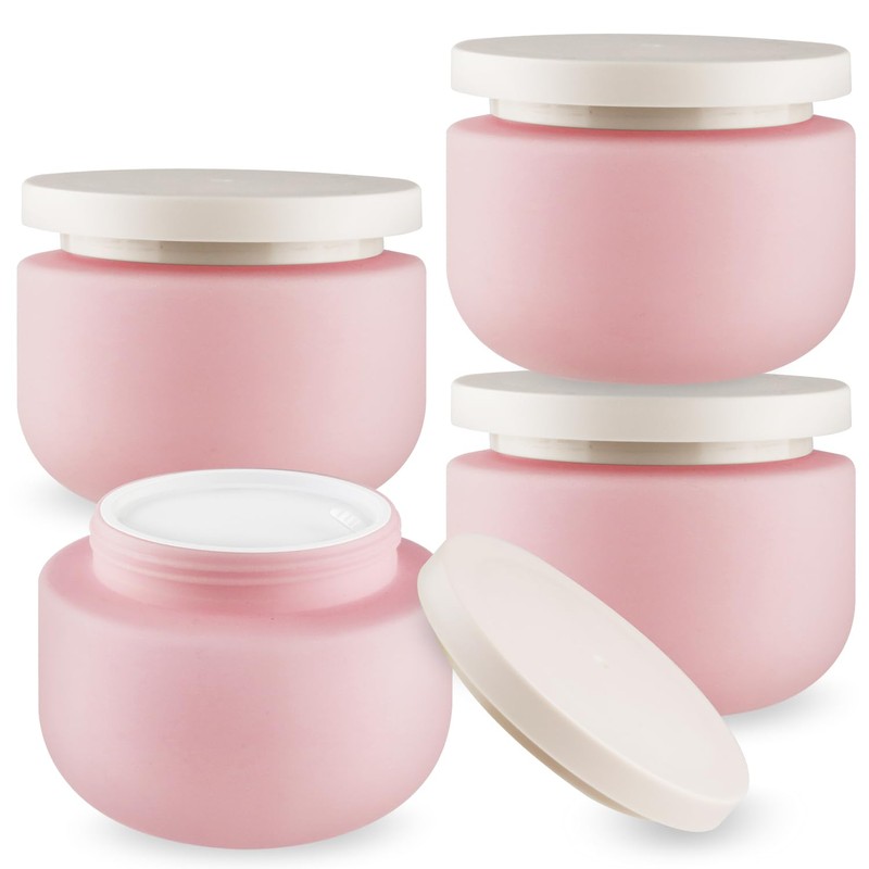 4 Pcs 250g/8.3oz Plastic Cream Jars Sample Containers Wide Mouth Leak Proof Cosmetic Bottles with Lids for Lotion Make Up DIY Making Beauty Products - Pink