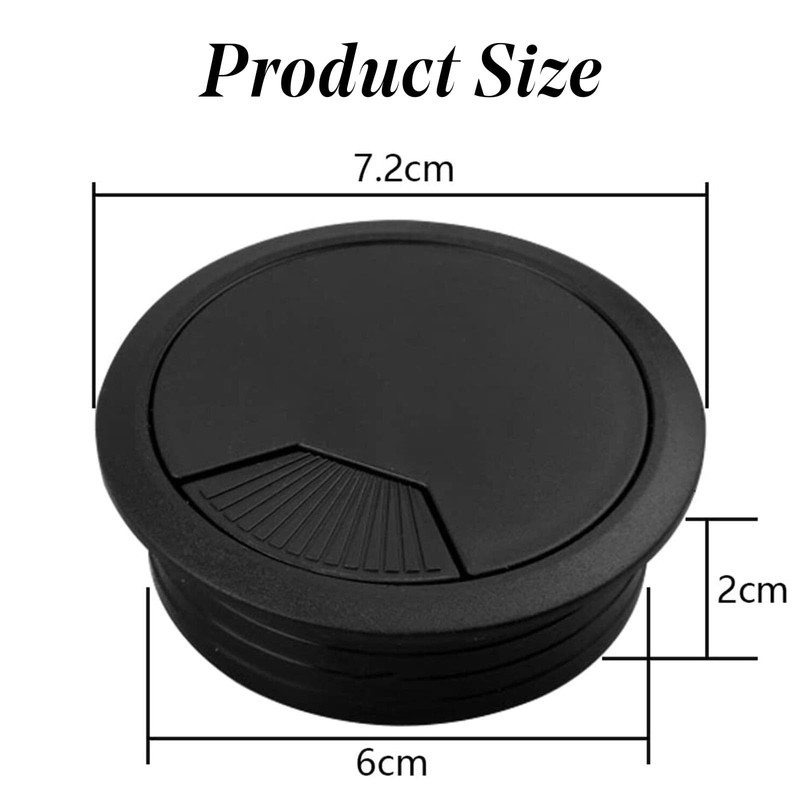 - Size: Mounting holes for desk grommet is 60 mm in diameter. The overall diameter is 72 mm, the height is 20 mm. Perfect size for easier cable management.
