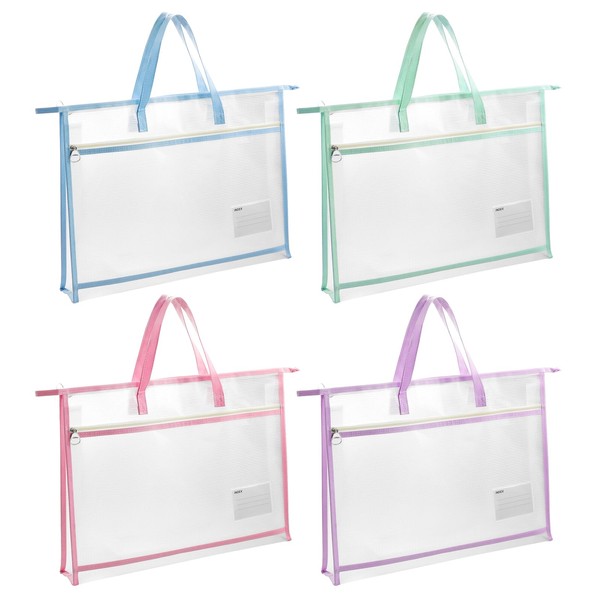 4 Pcs A4 Portable Project Bags for Quilting, Clear Mesh Sewing Project Bag with Zipper Handle Clear Design Art Supply Bag for Quilting Knitting Stitching Artworks Embroidery