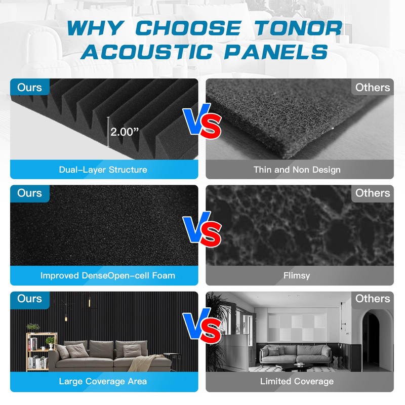 - **Premium Quality**------ Our Acoustic Foam is crafted from high-density, flame-retardant polyurethane foam that is odorless and non-toxic, ensuring a safe environment while effectively reducing noise levels, making it ideal for various settings.