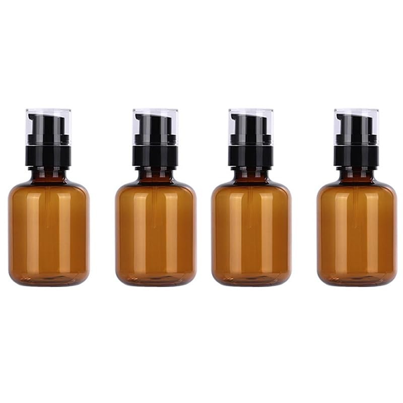 4 Pcs Amber Boston Round Bottle with Black Treatment Pump,120ml 4oz Amber Plastic Travel Bottles,Brown Essential Oil Container with Pump,Amber Lotion Bottle Reusable Lotion Container
