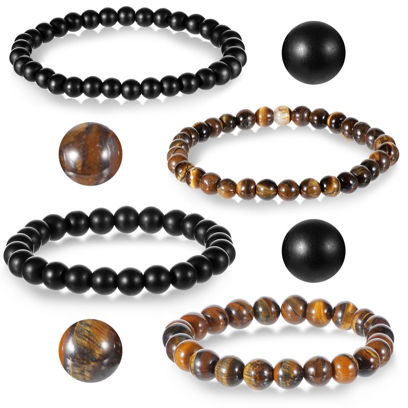 4 Pcs Bead Bracelets 6mm & 8mm Mens Beaded Bracelet Elastic Tiger Eye Bracelet for Men and Women, Heartwarming Gift