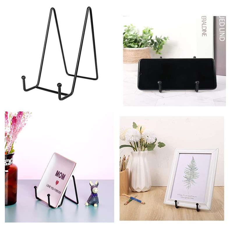 • 【Multi Purpose】: Black Iron Display Stand Perfect for holding picture frames, small cookbooks, decorative plates. Easel display holder enhances the style of artwork and can be well decorated with artwork, pictures or plates, adding a unique farmhouse and retro look to your house, office, banquet hall or showroom.
